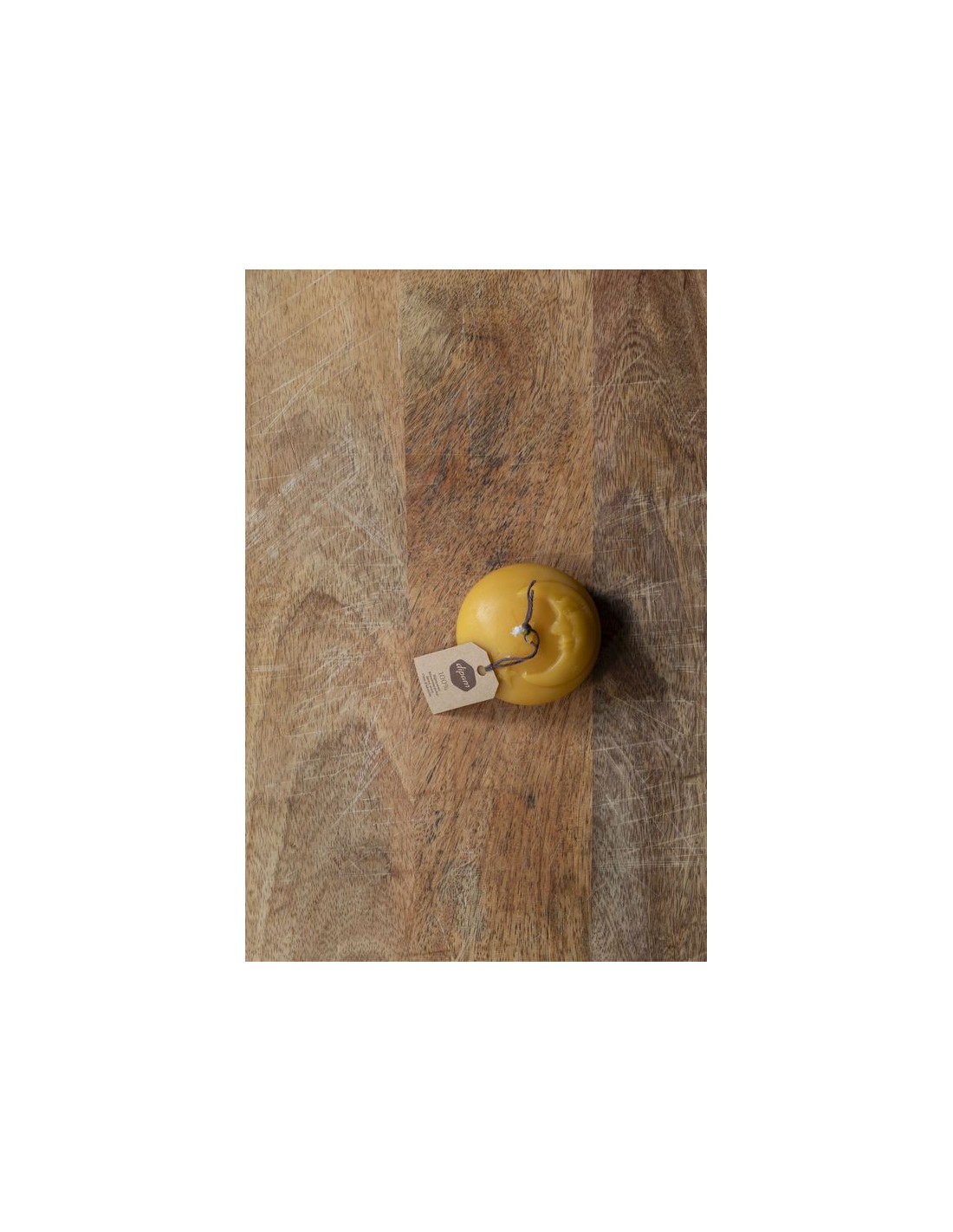Gegoten kaars van 100% bijenwas.Afmetingen: 7 x 3 cm.